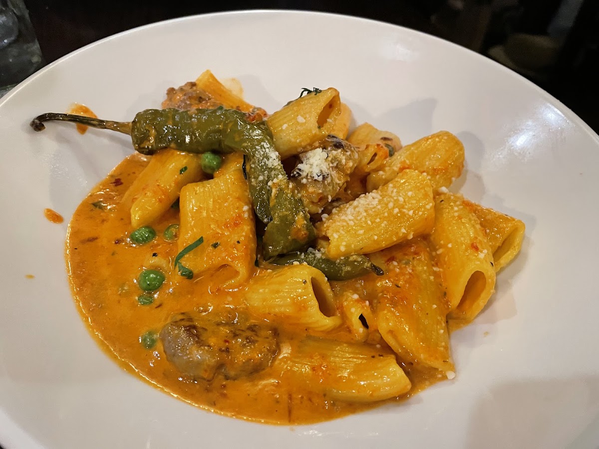 Excellent service and excellent food. Our servers, Kevin and Liam, blessed us with their menu knowledge, perfect recommendations, and friendly and professional service. Our bartender Joe kicked our night off perfectly with his favorite wine choice. And Richard the manager got us the perfect table in the perfect area, in the back where it is warm and vibrant. For dinner we had the chicken alfredo, spicy rigatoni with sausage, seafood vodka, and an amazing special, the snapper on a bed of parmesan cream risotto. We highly recommend Limoncello!!